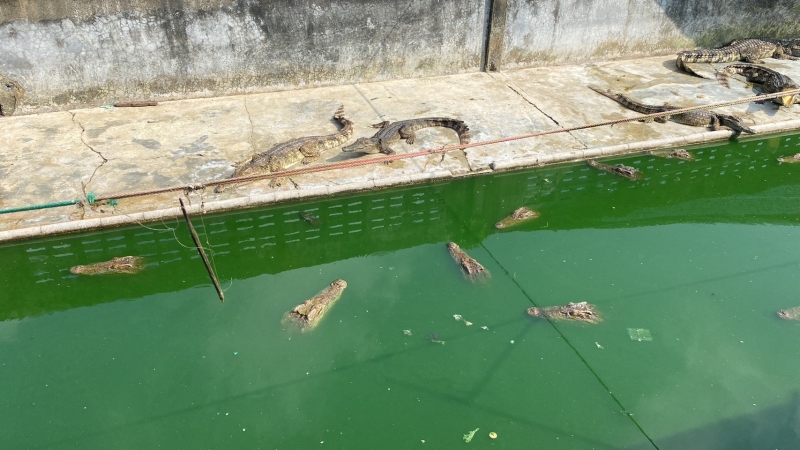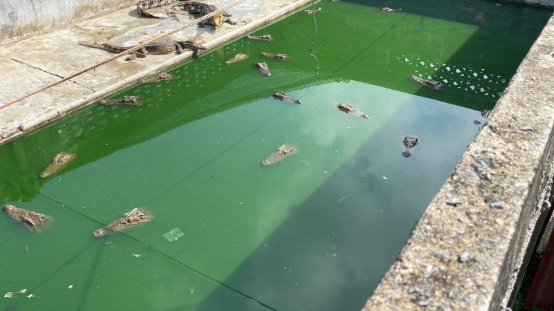 โดยจากการตรวจสอบพบว่า สภาพฟาร์มมีหญ้าขึ้นปกคลุมจนรกทั้งบนพื้นที่และบนบ่อเลี้ยงจระเข้แบบแยกตัว โดยบางบ่อ ยังมีจระเข้อยู่ภายใน แต่บางย่อพบซกโครงกระดูกจระเข้ ที่ตายนานแล้วและเพิ่งตายไม่นาน ก็ยังส่งกลิ่นเหม็นตลบอบอวลไปทั่วบริเวณ นอกจากนี้ยังพบบ่อเลี้ยงรวม 2 บ่อใหญ่ มีจระเข้จำนวนมาก อยู่ในสภาพหิวโซ