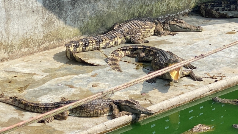 ขณะที่ชาวบ้านรอบบ่อจระเข้ พูดเป็นเสียงเดียวกันว่า น่ากลัว เพราะก่อนหน้านี้ ช่วงที่ฝนตกหนัก จนน้ำในบ่อสูงขึ้น ก็ทำให้จระเข้ขนาดใหญ่ ยาวกว่า 2 เมตร กระโดดข้ามกำแพง ไปนอนผึ่งแดดอยู่บนลานหน้าบ้าน ซึ่งจังหวะนั้น โชคดีที่เด็กๆ ในบ้านไม่ได้ออกมาเดินเล่น และหลังจากเห็นแล้ว ก็โทรศัพท์แจ้งผู้ใหญ่บ้านให้รีบเข้ามาช่วยเหลือทันที ซึ่งอยากให้หน่วยงานที่เกี่ยวข้องเร่งดำเนินการ เพราะขณะนี้จระเข้นับร้อยตัว อยู่ในสภาพหิวโซ บางตัวก็กัดกินกันเองแล้ว จนหางขาด