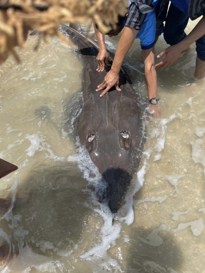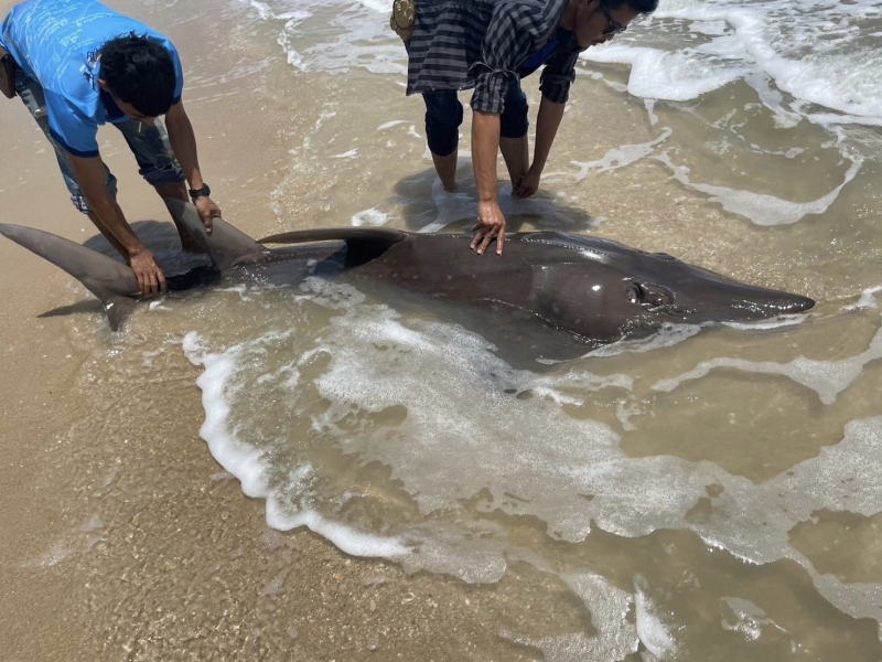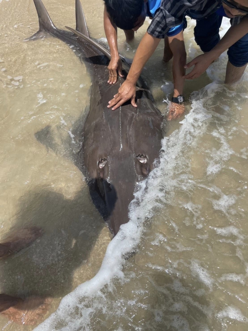 หลังจากที่พบชาวบ้านในพื้นที่ก็ต่างช่วยเหลือเจ้าปลาโรมันที่เกยตื้นให้กลับลงสู่น้ำทะเลได้อกีครั้ง เพราะกลัวว่าหากช้าปลาโรมันจะตายได้