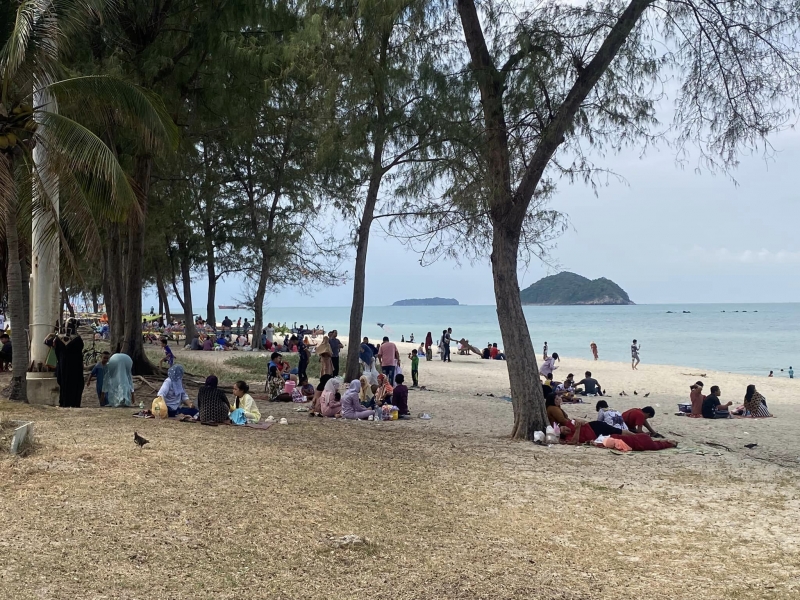 วันนี้ (22 เม.ย.66) ที่ แหลมสมิหลา อ.เมือง จ.สงขลา นักท่องเที่ยวชาวมุสลิมทั้งชาวไทยและชาวมาเลเซีย เดินทางกันมาเที่ยวชมความสวยงามของนางเงือก และชายหาดสงขลาเป็นจำนวนมาก ซึ่งส่วนใหญ่มากันเป็นครอบครัว ปูเสื่อล้อมวงรับประทานอาหารอย่างพร้อมหน้าพร้อมตา ในช่วงวันอีฎิ้ลฟิตริ หรือวันรายอปอซอ ซึ่งเป็นวันสำคัญของชาวมุสลิมทั่วโลก และวันออกบวชหลังจากได้ถือศีลอดตลอดระยะเวลา 1 เดือน
