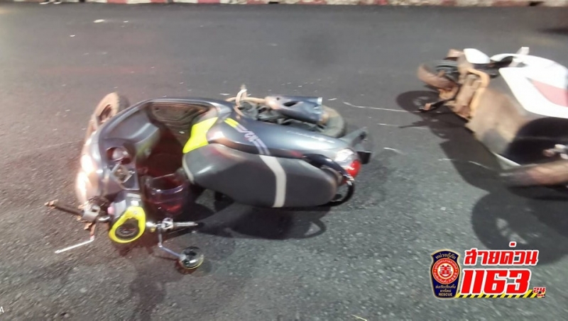 โดยมอเตอร์ไซค์สกู๊ปปี้ทั้ง 2 คัน โดนชนจนจอดใกล้กันเป็นรอยชนทางยาว และอีกคันมอเตอร์ไซค์ MSX จอดล้อชี้ฟ้า รถเสียหายเกือบทั้งคัน ส่วนสาเหตุอยู่ในระหว่างสอบถามคนขับทั้ง 3 คันอีกครั้งหนึ่ง