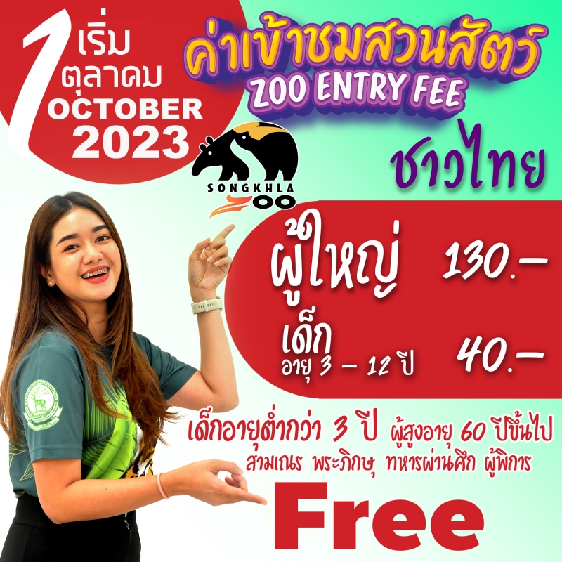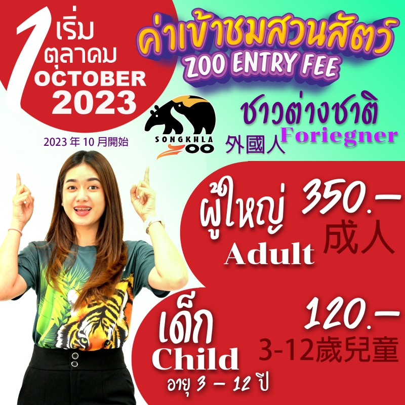วันนี้(11/9/66) สวนสัตว์สงขลา แจ้งปรับราคาค่าเข้าชมสวนสัตว์สงขลาตามประกาศ องค์การสวนสัตว์แห่งประเทศไทยในพระบรมราชูปถัมภ์เรื่อง การปรับราคาค่าเข้าชมสวนสัตว์เชียงใหม่ สวนสัตว์นครราชสีมา สวนสัตว์สงขลา สวนสัตว์อุบลราชธานี สวนสัตว์ขอนแก่น