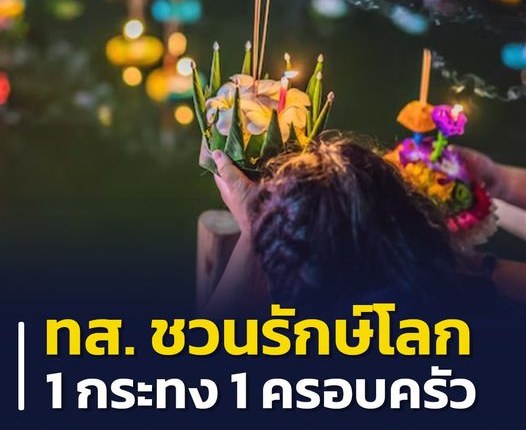 กระทรวงทรัพย์ฯ ชวนรักษ์โลก รักษ์ประเพณีไทย ลอยกระทงด้วยกัน 1 ครอบครัว 1 กระทง ลดขยะ ลดโลกร้อน ย้ำ!! พ่อค้า - แม่ค้า งดใช้โฟมผลิตกระทง