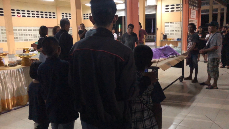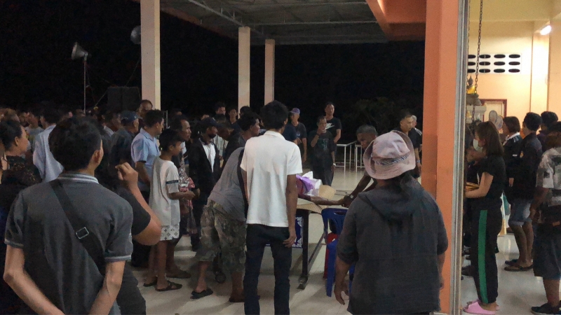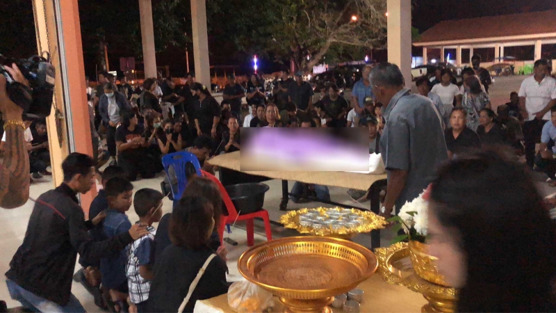 ต่อมาเวลา 19.00 น. ที่วัดบ่อแดง ตำบลบ่อแดง อำเภอสทิงพระ จังหวัดสงขลา ทางครอบครัวและญาติพี่น้องของ จำนวนมากต่างมารอรับศพนายสิทธิพงศ์ จันท์สระ หรือ อ๊อด อายุ 35 ปี เพื่อทำพิธีขอขมากรรม รดน้ำศพและเข้าสู่พิธีตามหลักศาสนา