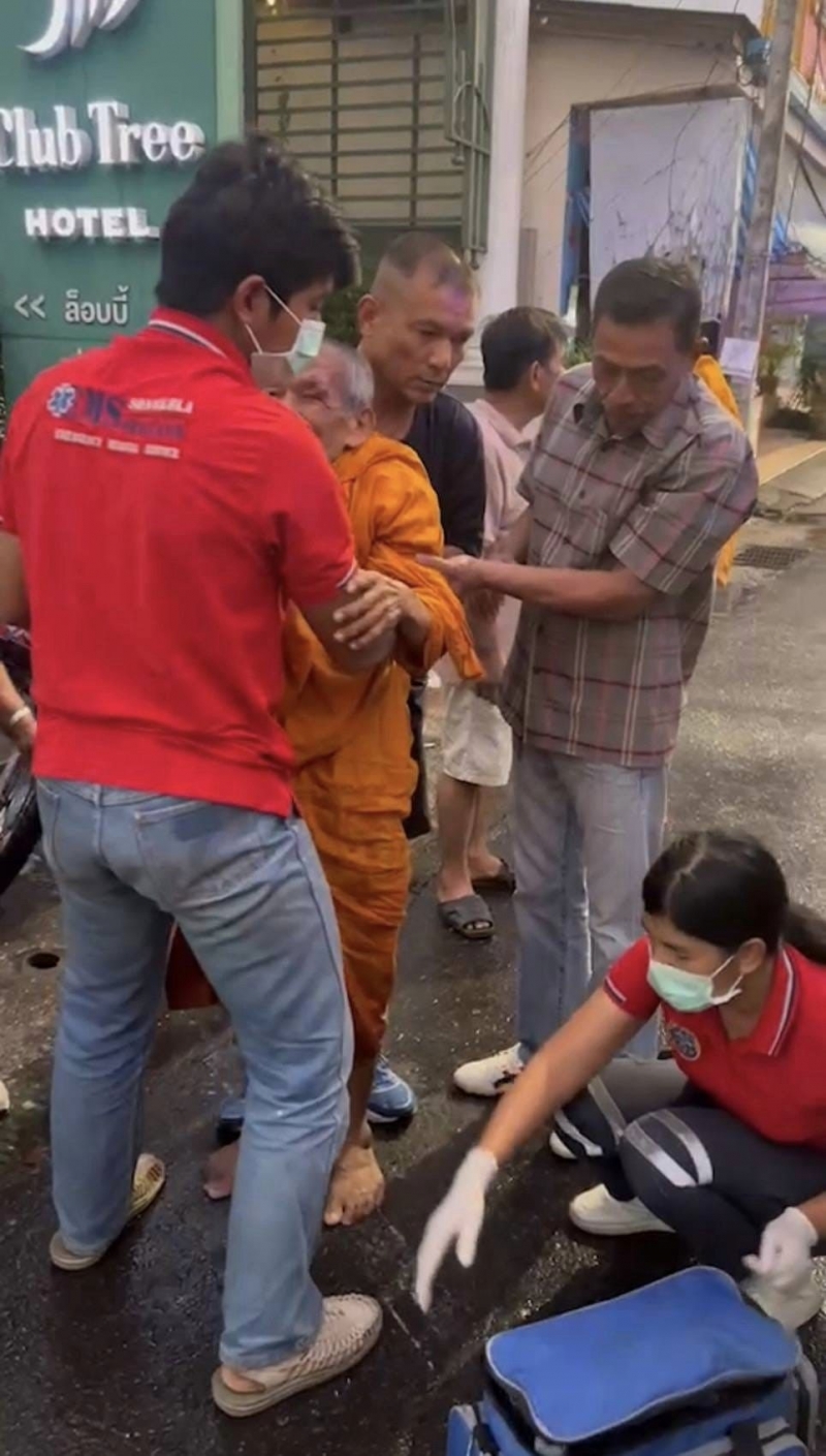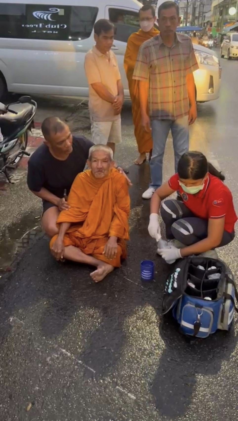 และได้เข้าทำการช่วยเหลือปฐมพยาบาลเบื้องต้นด้วยการห้ามเลือด และอยู่ดูแลพระภิกษุพร้อมกับชาวบ้านที่เห็นเหจุการณ์พอดีก็ได้เข้ามาช่วยเหลือ จนรกระทั่งถกู้ชีพมาถึงบริเวณที่เกิดเหตุ จึงรับช่วงดูแลนำผู้บาดเจ็บส่งต่อทางสายการแพทย์ต่อไป