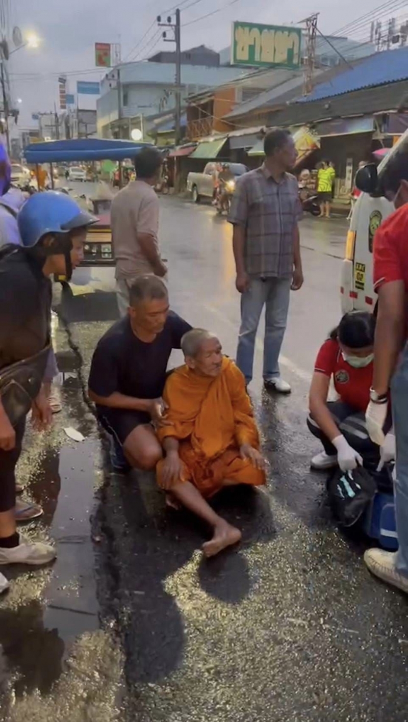 บริเวณถนนทะเลหลวง ต.บ่อยาง อ.เมืองสงขลา จว.สงขลา ทำให้พระภิกษุล้มลงได้รับบาดเจ็บศีรษะแตก มีเลือดไหลออกมาจากบาดแผล และมีเลือดไหลออกทางจมูก ทางด้านน.ต.วสันต์ ภิรมย์โพธิ์ ได้รีบโทรแจ้ง 1669 (ศูนย์นเรนทร)
