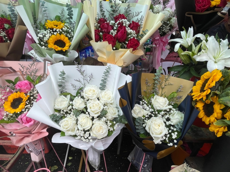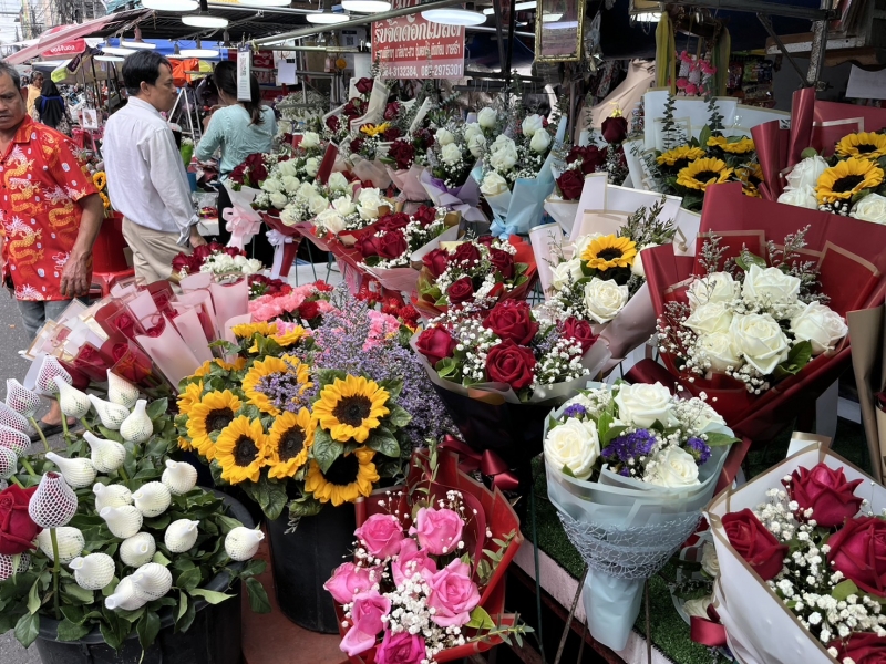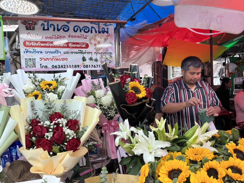 ส่วนร้าน Jaae Flower ตลาดกิมหยง ก็ได้มีการให้ข้อมูลว่าปีนี้ดอกไม้ราคาถูกกว่าปีที่แล้ว ซึ่งตอนนี้มียอดสั่งจองจำนวนมากและในวันนี้ตนได้มีการทำช่อดอกไม้ไปประมาณ 100 กว่าช่อแล้ว ซึ่งที่ขายดีที่สุดก็มักจะเป็นดอกกุหลาบสีชมพู ส่วนดอกไม้ชนิดอื่นลูกค้าจะซื้อเพื่อนำไปประดับตกแต่งในช่ออีกที