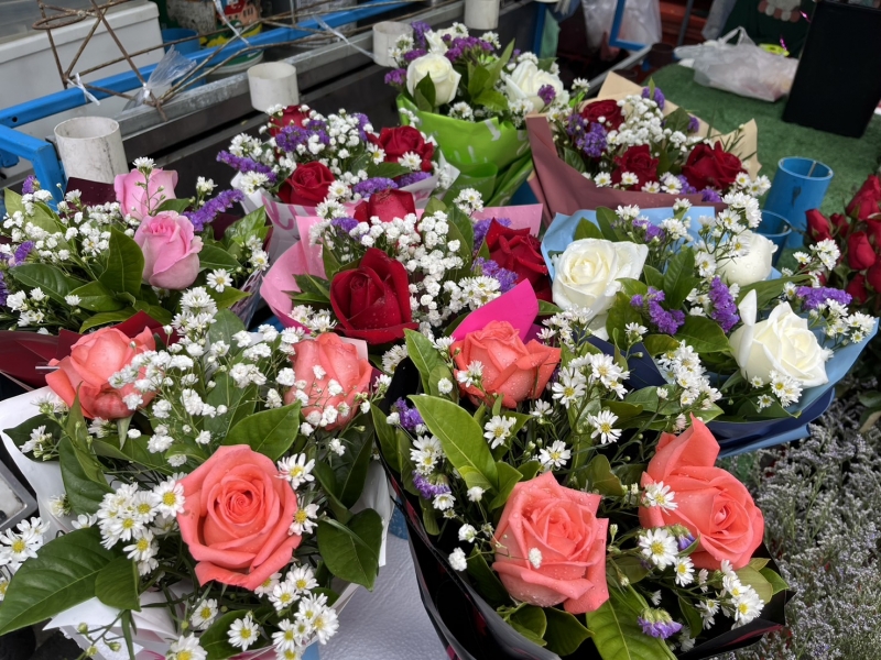 และพ่อค้าแม่ค้าร้านขายดอกไม้ได้บอกว่า ในช่วงเย็นของวันนี้ก็จะมีดอกกุหลาบล็อตใหม่เข้ามาอีกจำนวนมาก เพื่อเตรียมจัดช่อขายในวันพรุ่งนี้ ลูกค้าสามารถเข้ามาดูได้ที่ร้านหรือริมถนนในตลาดกิมหยง หรือจะทำการสั่งจองไว้ก่อนล่วงหน้าก็ได้ เพราะออเดอร์ในการจัดช่อตอนนี้มีค่อนข้างเยอะมาก ส่วนจะเลือกจัดแบบไหนก็สามารถบอกระบุแก่ทางร้านได้