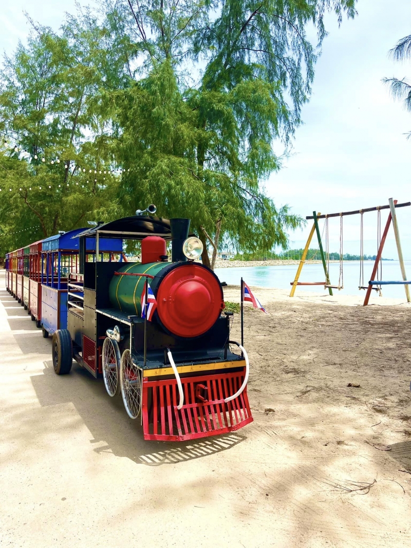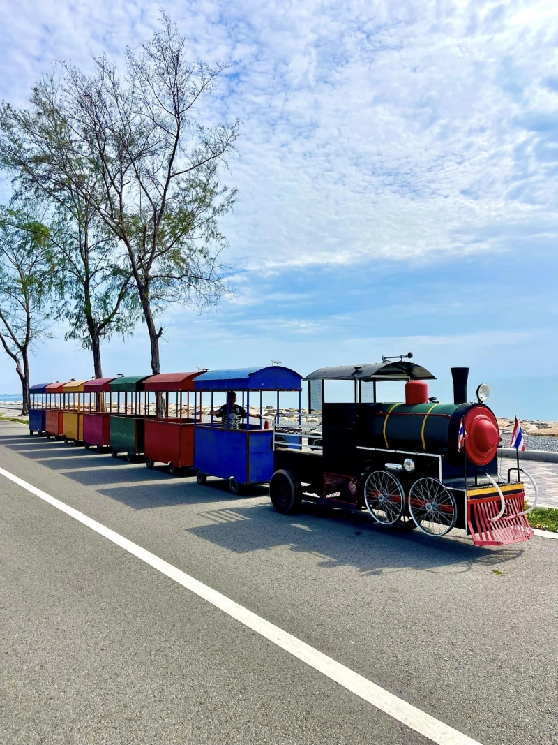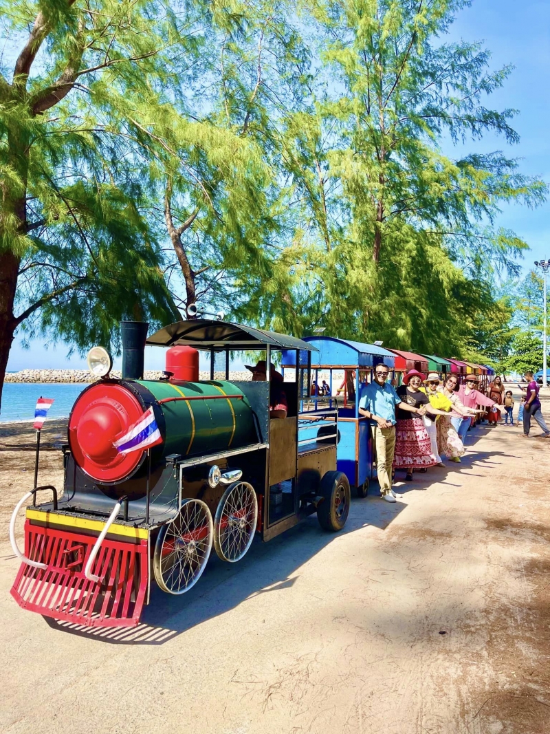 ชายหาดบ่ออิฐคึกคัก นักท่องเที่ยวแห่พาบุตรหลานนั่งรถไฟหรรษา ณ ชายหาดบ่ออิฐ