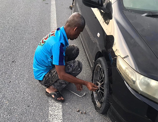 ซึ่งต่อมาได้มีพลเมืองดีผ่านมาพบพรัอมอาสาเปลี่ยนยางอะไหล่ให้จนสามารถเดินทางต่อได้ จากการสอบถามของผู้เกิดอุบัติเหตุ ทราบว่าพลเมืองดีท่านนั้นทำงานเป็นทหารเรืออยู่ที่จังหวัดสงขลา