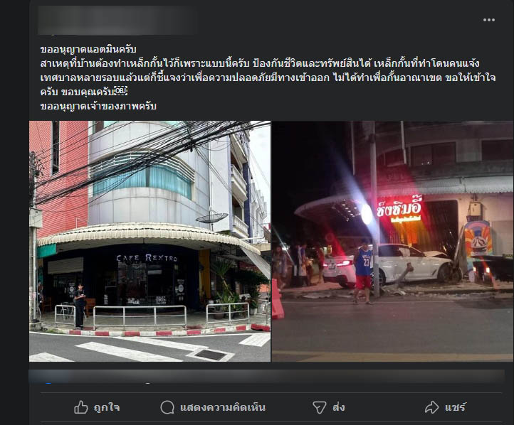 หลังจากเกิดเรื่องก็มีชาวบ้านได้โพสต์ข้อความแนวคิดในการป้องกันอุบัติเหตุ โดยมีใจความที่ว่า "ขออนุญาตแอดมินครับสาเหตุที่บ้านต้องทำเหล็กกั้นไว้ก็เพราะแบบนี้ครับ ป้องกันชีวิตและทรัพย์สินได้ เหล็กกั้นที่ทำโดนคนแจ้งเทศบาลหลายรอบแล้ว แต่ก็ชี้แจงว่าเพื่อความปลอดภัยมีทางเข้าออก ไม่ได้ทำเพื่อกั้นอาณาเขต ขอให้เข้าใจครับ ขอบคุณครับ ขออนุญาตเจ้าของภาพครับ" ก็คือวอนให้ติดตั้งแผงเหล็กหน้าร้าน