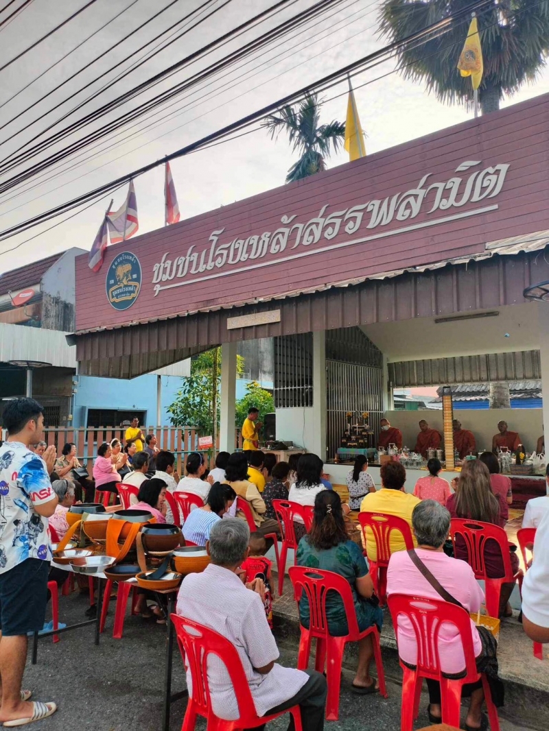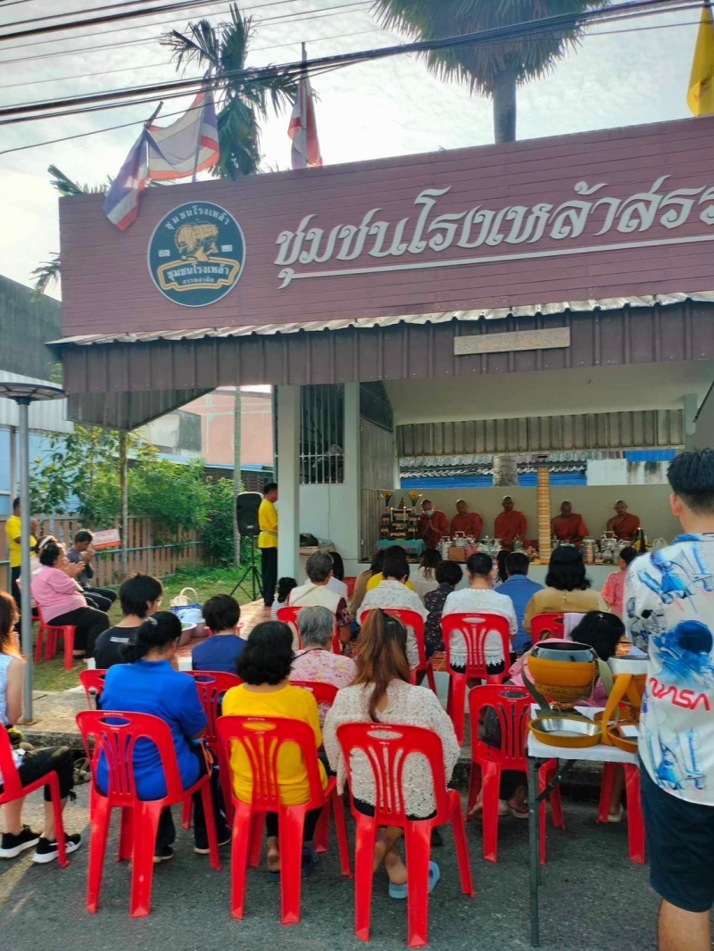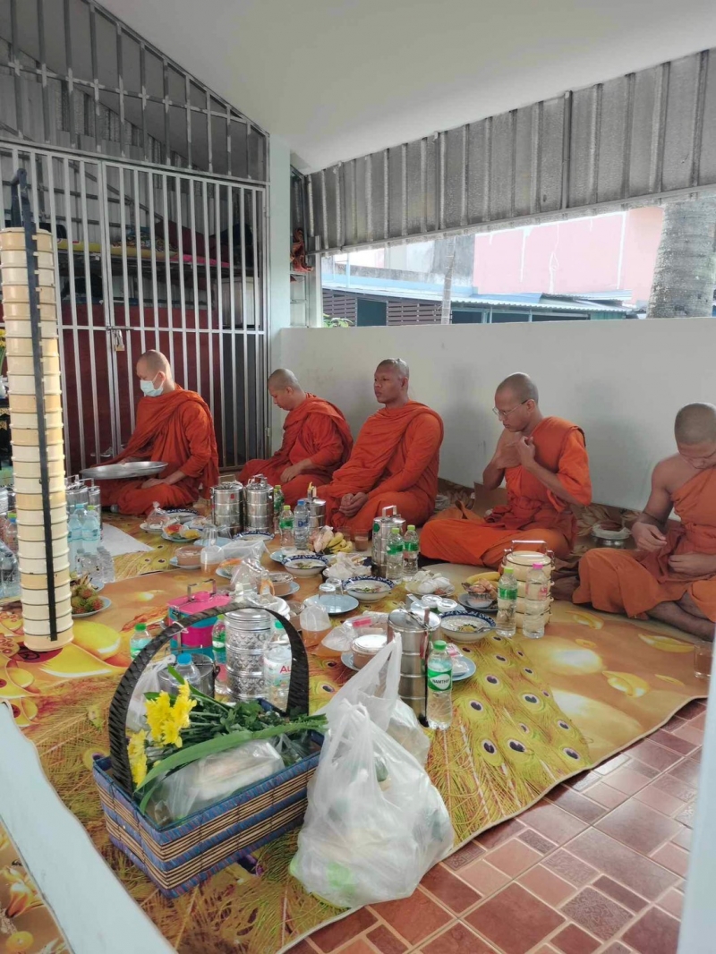 วันนี้ 23 กรกฎาคม 2567 ภาพชาวบ้านของหมู่บ้านแห่งหนึ่ง ที่ศาลาอเนกประสงค์ ถนนสาครมงคล 2 ตำบลหาดใหญ่ อำเภอหาดใหญ่ จังหวัดสงขลา ได้นิมนต์พระสงฆ์มาสวดมนต์เพื่อเป็นสิริมงคลแก่ชาวบ้านที่ได้ร่วมกันทำบุญหมู่บ้านประจำปีในช่วงวันเข้าพรรษา โดยแต่ละครอบครัวก็จะนำปิ่นโตซึ่งภายในปิ่นโตก็จะมี อาหารคาวหวาน นำมาถวายแก่พระสงฆ์ตามประเพณีวิถีของชาวพุทธ