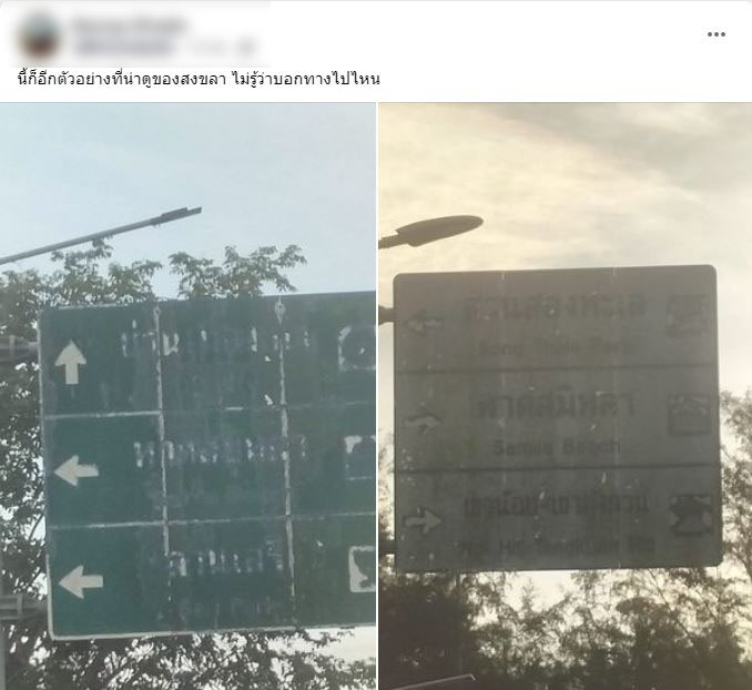 วันนี้(6/8/67) จากกรณีที่ได้มีผู้ใช้งานเฟสบุ๊ครายหนึ่งโพสภาพและข้อความเกี่ยวกับป้ายบอกทางสงขลา ที่มีข้อความเลือนลางจนแทบจะมองไม่เห็น โดยมีข้อความในโพสระบุว่า "นี้ก็อีกตัวอย่างที่น่าดูของสงขลา ไม่รู้ว่าบอกทางไปไหน"