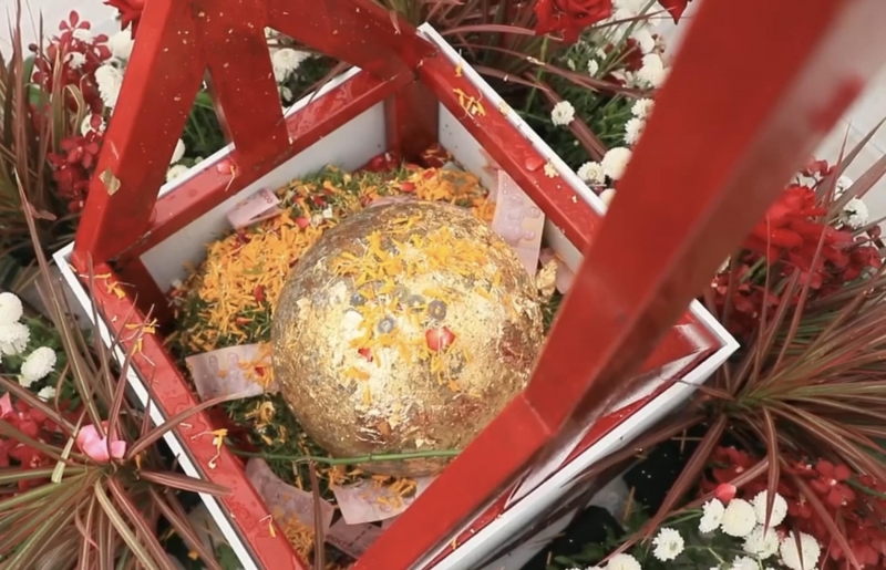 จากนั้นเจ้าหน้าที่สำนักงานพระพุทธศาสนาแห่งชาติอัญเชิญวางที่พานหน้าพระบรมฉายาลักษณ์พระบาทสมเด็จพระเจ้าอยู่หัว / พระสงฆ์ 10 รูป เจริญชัยมงคลคาถา และเชิญเจ้าภาพตัดหวายลูกนิมิตไปประจำจุด ณ แท่นตั้งลูกนิมิตที่อุโบสถ ชั้น 5 จำนวน 9 เจ้าภาพ และ แท่นตั้งลูกนิมิตชั้นใต้อุโบสถ จำนวน 9 เจ้าภาพ / จากนั้นได้เวลาฤกษ์ให้สัญญาณคณะเจ้าภาพทั้งหมดตัดหวายลูกนิมิต พระสงฆ์ 10 รูป เจริญชัยมงคลคาถา / เจ้าประคุณสมเด็จฯ ประธานสงฆ์มอบให้พระสงฆ์ไทย 5 รูป เป็นประธานลงไปทักนิมิตที่ชั้นใต้อุโบสถ และมอบให้พระสงฆ์จีนนิกาย 5 รูปเป็นสักขีพยานในพิธี /เจ้าประคุณสมเด็จฯและพระสงฆ์ไทย 21 รูป พร้อมด้วยพระสงฆ์จีนนิกาย 5 รูป ขึ้นไปยังอุโบสถชั้น 5 ร่วม ประกอบสังฆกรรมผูกพัทธสีมาจนเสร็จพิธี