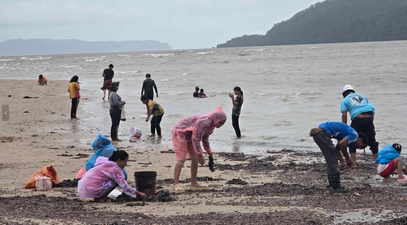 วันนี้(20/9/67) ชายหาดปาบาราคึกคักชาวบ้านแห่เก็บหอยกะพงตามแนวชายหาดซึ่งถูกคลื่นซัดเข้าฝั่งเกยชายหาดนับแสนตัว บริเวณชายหาดปากบารา อ.ละงู จ.สตูล
