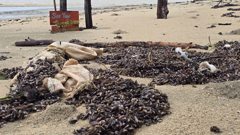 ชาวบ้านก็แห่กันมาเก็บเพื่อนำไปกินบ้างนำไปขายบ้าง ส่วนที่หอยเยอะมากที่สุดจะเป็นตรงโรงแรมซีซี ซึ่งหอยที่ถูกซัดขึ้นมาส่วนใหญ่ก็จะเป็นหอยกะพง แต่จะมีหอยหวานปนอยู่บ้างประปราย ซึ่งตอนนี้ทั้งชายหาดเต็มไปด้วยซากของหอยกระพง ในปีนี้ที่หอยถูกซัดขึ้นมาเยอะกว่าปกติเพราะคลื่นลมรุนแรงมาก พายุซัดเข้าฝั่งจนร้านอาหารแถวชายหาดพังเสียหายไปหลายร้าน ร้านของตนก็เป็นหนึ่งในนั้น