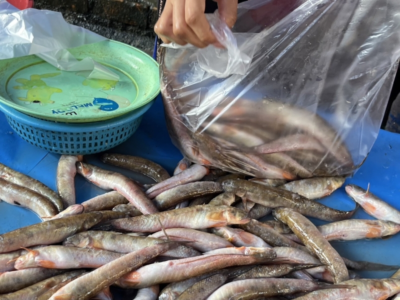 โดยในช่วงนี้จะยังเป็นช่วงเริ่มต้นฤดูฝนทำให้ชาวประมงยังหาปลาท่องเที่ยวมาขายได้จำนวนไม่มากนัก ภายในตลาดควนเนียงก็จะเห็นพ่อค้าแม่ค้ามีการนำปลาท่องเที่ยวมาขายประมาณ 3-4 แผง โดยราคากิโลละ 100 บาท ประมาณ16-19 ตัวโล ซึ่งหากถึงฤดูน้ำหลากปลาท่องเที่ยวจะมีจำนวนเยอะมาก ผู้คนก็จะแห่แหนกันไปซื้อ ด้วยความที่ปลามีจำนวนมากราคาจึงถูกลง เมื่อเทียบกับปีก่อนๆราคาจะอยู่ที่ กิโลละ 50-70 บาท แต่ในช่วงที่มีปลาเยอะมากก็จะมีการขายในราคา 3 กิโลร้อยเลยทีเดียว