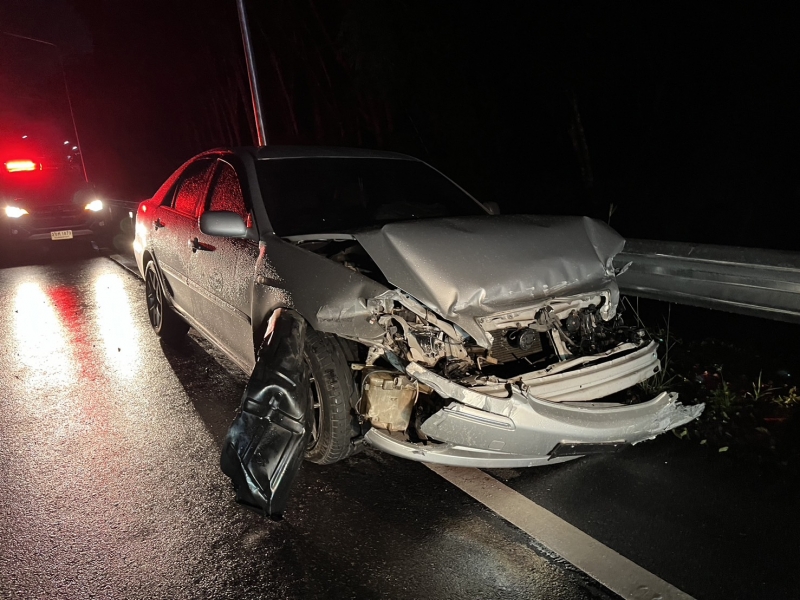 ก่อนจะเลี้ยวขวาเข้าถนนปุณกัณฑ์ มอ. ระยะทางประมาณ 10 กิโลเมตร รถยนต์เสียหลักมุ่งชนราวกั้นข้างทาง ไม่สามารถขับขี่ต่อไปได้ คนร้ายได้ทิ้งรถหลบหนีเข้าป่า เจ้าหน้าที่ไม่สามารถจับกุมตัวได้