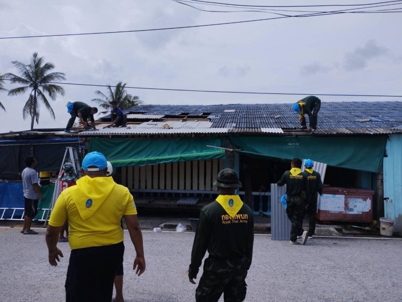 ทางชาวบ้านก็ได้พี่ๆทหารของมทบ. 42 เข้ามาช่วยเหลือจัดการซ่อมแซมจนแล้วเสร็จ ในช่วงบ่าย ท้ายนี้ขอขอบคุณไปยังพี่ๆทหารทุกนายที่มาร่วมด้วยช่วยกันในการช่วยเหลือประชาชนอย่างทั่วถึง ทำให้หลังคาบ้านกลับมาใช้งานได้อย่างปกติ
