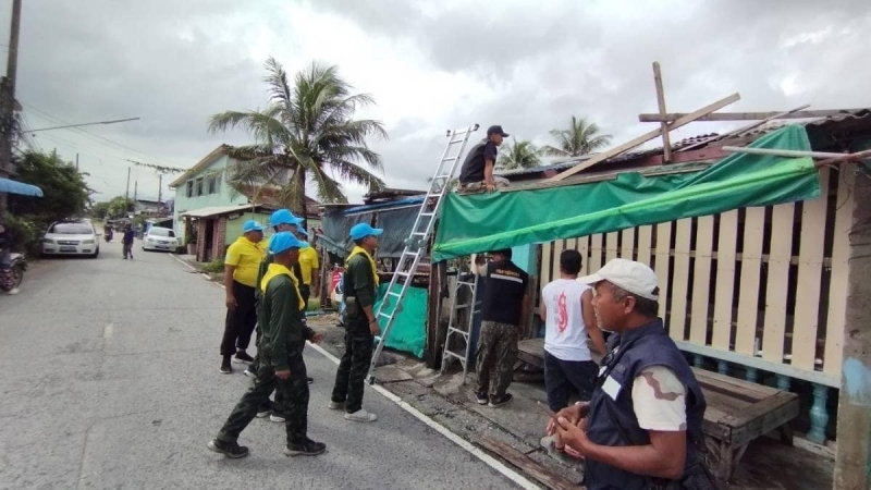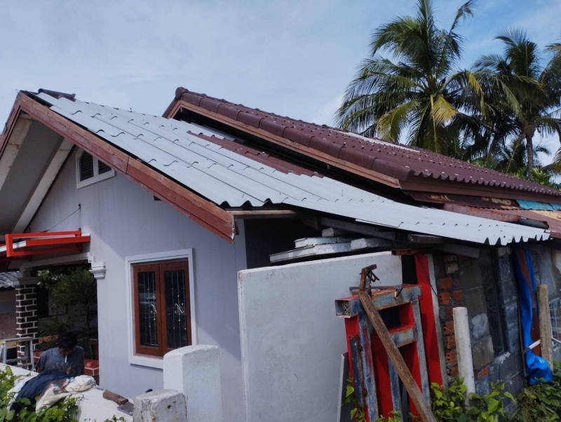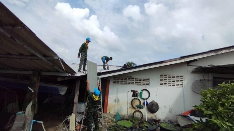 ลงพื้นที่ทำการซ่อมแซมเปลี่ยนกระเบื้องหลังคาบ้าน จำนวน 4 หลัง ให้กับพี่น้องประชาชน ที่ได้รับผลกระทบจากเหตุวาตภัย จำนวน 10 ครัวเรือนให้สามารถกลับมาพักอาศัยได้ตามปกติ