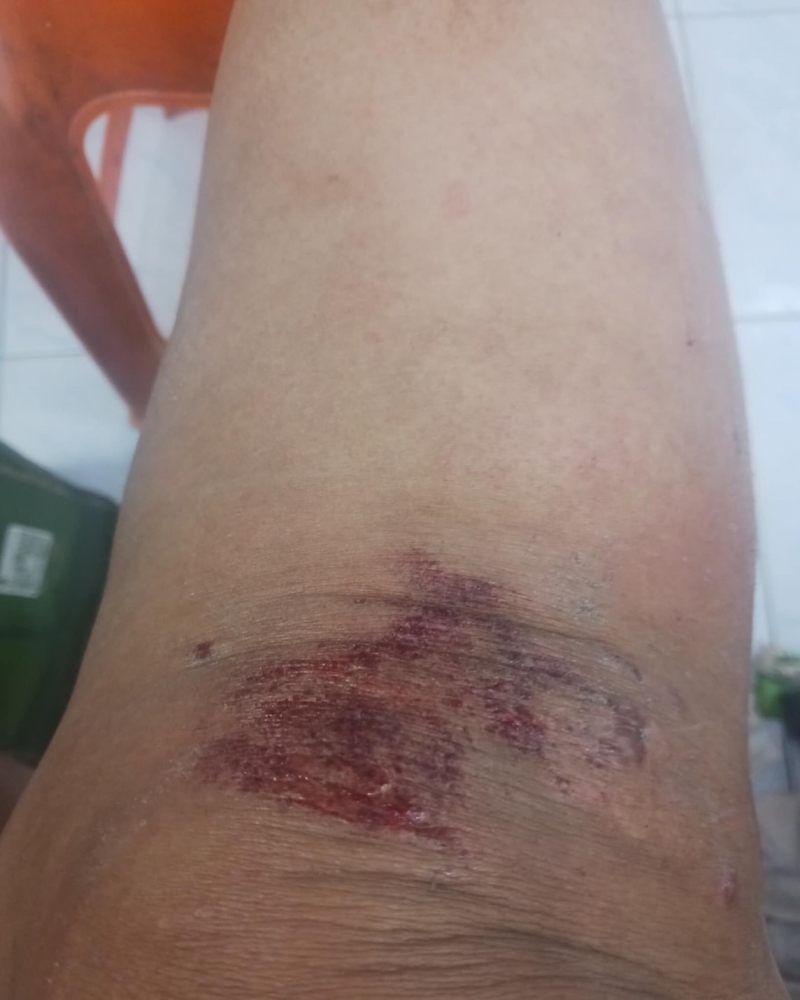 ซึ่งล่าสุดจนได้เดินทางเข้าแจ้งความแล้วและทางพนักงานสอบสวนก็ได้ให้ตนไปตรวจร่างกายที่โรงพยาบาลเพื่อขอใบรับรองแพทย์ หลังเดินทางไปตรวจร่างกายและทางที่แพทย์ที่รักษาได้บอกว่า หลังออกจากโรงพยาบาลให้โทรหาพนักงานสอบสวนมารับใบรับรองแพทย์ได้เลย ก่อนที่ตนโทรหาพนักงานสอบสวนที่เป็นเจ้าของคดีให้รีบมารับใบรับรองแพทย์ แต่พยายามโทรหลายสายเน้นย้ำว่าให้ไปรับได้เลย จนถึงตอนนี้ พนักงานสอบสวนยังไม่มีการไปรับใบรับรองแพทย์และเรียกสอบปากคำ ตอนนี้ต้องอยู่อย่างหวาดระแวงและกลัวว่าจะมาทำร้ายร่างกายตนอีกตอนไหน ฝากสื่อช่วยเป็นสื่อกลาง กระตุ้นให้เจ้าหน้าที่ตำรวจเร่งดำเนินคดี