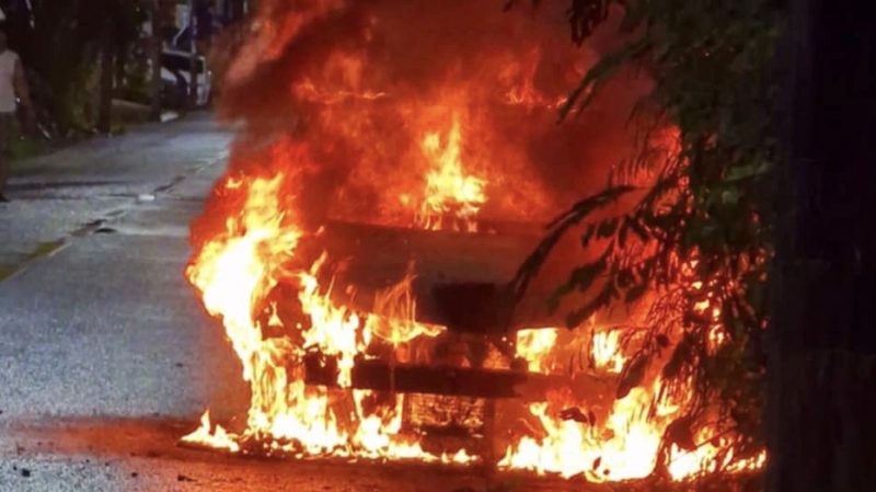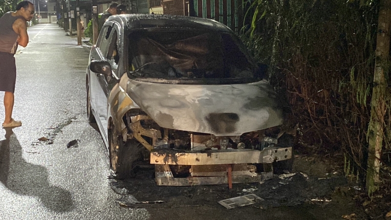 ต่อมาได้มีเพื่อนบ้านวิ่งมาเรียกตนหน้าบ้านว่า รถยนต์ของตนที่จอดอยู่หน้าบ้านไฟกำลังลุกไหม้อยู่ ก่อนที่เพื่อนบ้านจะโทรแจ้งเจ้าหน้าที่ดับเพลิง โดยปกติตนจะจอดรถยนต์ไว้ในบ้าน แต่วันนี้ฝนตกเลยขี้เกียจเอารถยนต์เข้าบ้าน ถ้าเอารถยนต์เข้าบ้านช่วงที่เปิดประตูบ้านทั้งหมดกลัวตนเองจะเปียกเลยจอดไว้ตรงหน้าบ้านดีกว่า แต่โชคยังดีตนเองไม่อยู่ในรถยนต์และไม่เอารถยนน์เข้าไปจอดในบ้าน ถ้าตนอยู่ในรถยนต์และจอดในบ้านตอนนั้นคงวุ่นวายแน่ ส่วนสาเหตุที่ไฟได้ลุกไหม้นั้นตนยังไม่ทราบสาเหตุเลยว่าไหม้ได้อย่างไร ซึ่งเป็นรถยนต์เดิมๆไม่ได้ไปตกแต่งอะไร