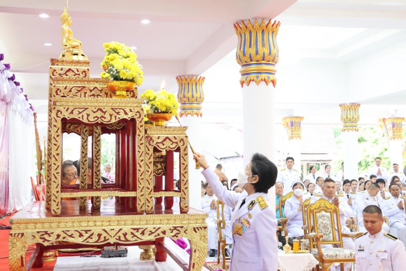 โดยเมื่อประธานมาถึงในบริเวณพิธี เจ้าหน้าที่ได้เชิญผ้าไตร น้ำสรง และเครื่องสักการะ พระราชทานประธานในพิธีจุดรูปเทียนบูชาพระรัตนตรัย นายอำเภอเทพาอ่านหมายรับสั่งจากสำนักพระราชวัง เจ้าหน้าที่เชิญเครื่องสักการะ ประธานในพิธีถวายเครื่องสักการะ น้ำสรง และผ้าไตรพระราชทาน พระสงฆ์เจริญชยมงคลกถา