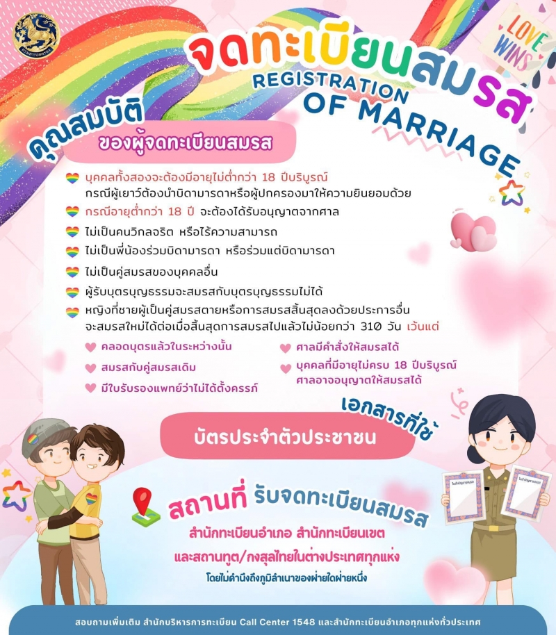 สำหรับวันนี้ 23 มกราคม 2568 สมรสเท่าเทียม ทุกอำเภอทั่วประเทศ 878 แห่ง จัดกิจกรรม DOPA-Day One "ตีฆ้องชัยให้ทุกความรัก 878 อำเภอทั่วไทย (DOPA-Day One : Equality Rings in 878 Districts) ขอเชิญชวนคู่รักทุกเพศไปจดทะเบียนสมรสได้ ณ สำนักงานทะเบียนอำเภอหาดใหญ่