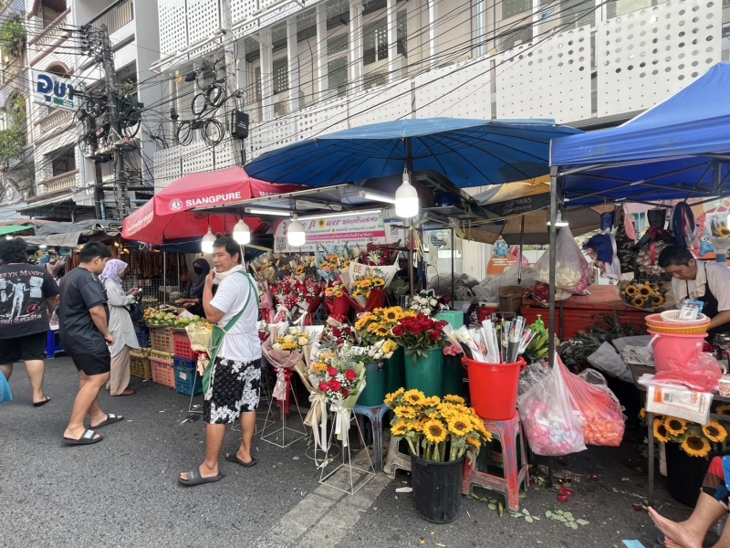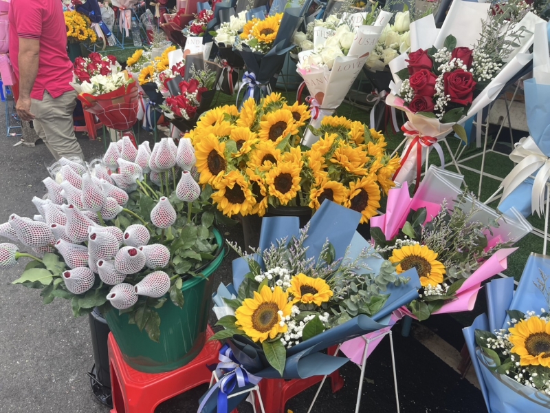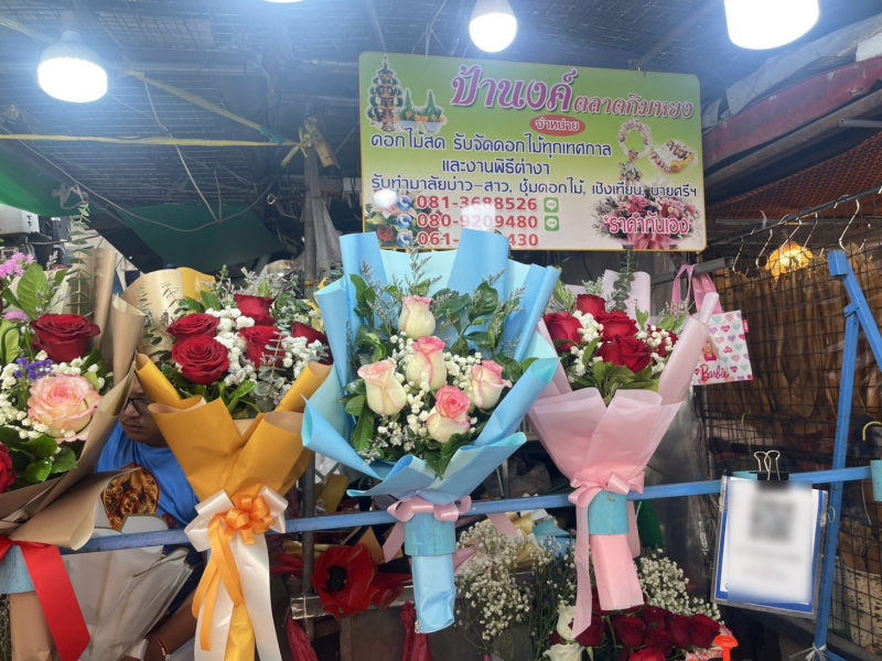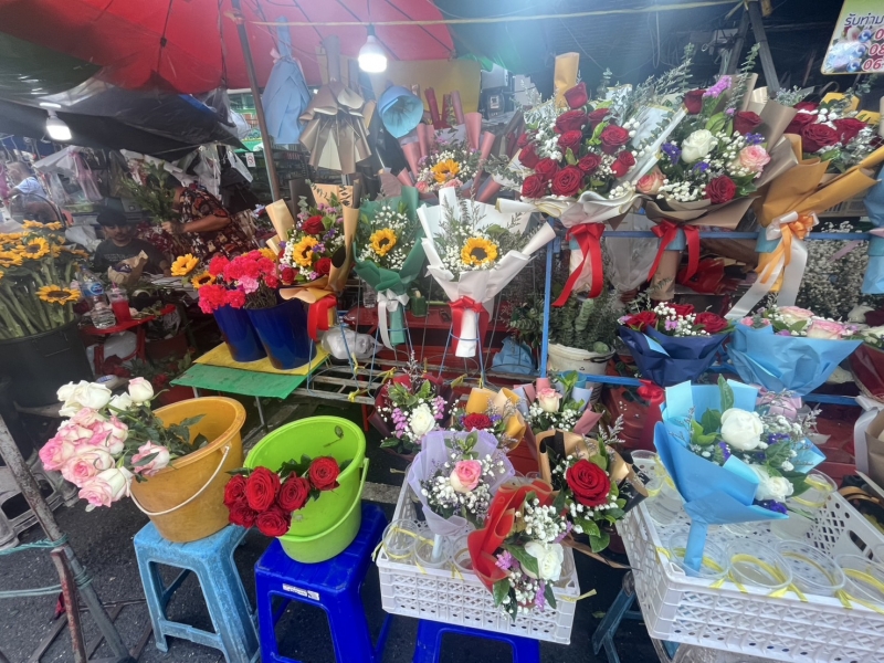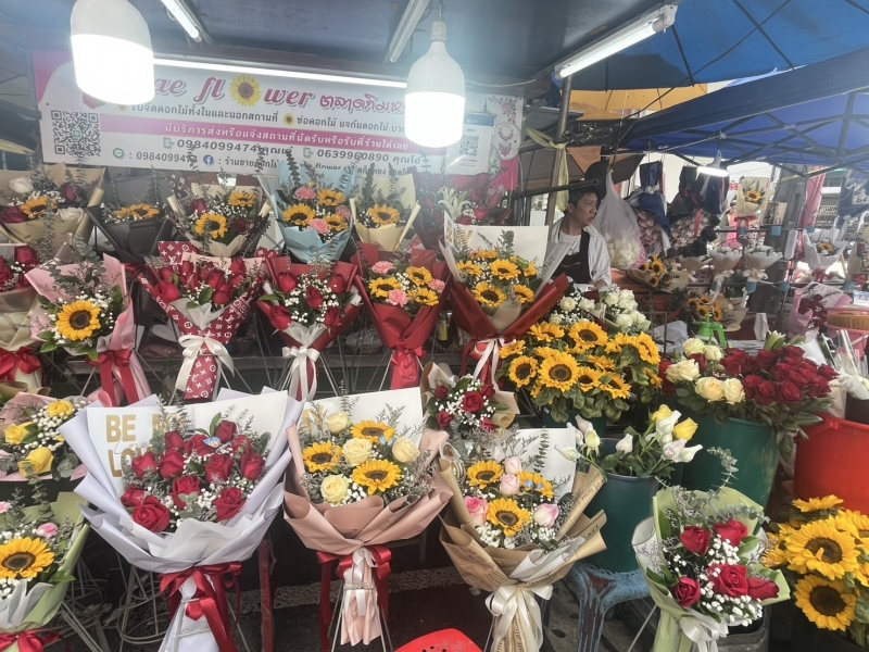 บรรดาร้านขายดอกไม้ พ่อค้าแม่ค้าต่างมีการนำดอกไม้หลายหลายชนิดมาจัดเรียงหน้าร้านอย่างสวยงาม มีทั้งขายเป็นดอกเดี่ยวๆแยก หรือจัดเป็นช่อไว้เพื่อให้ลูกค้าได้มีโอกาสเลือกซื้อสินค้าหลากหลายแบบมากขึ้น