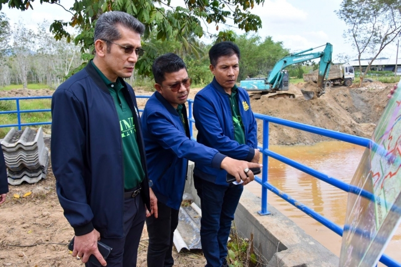 นายธีระชุณ บุญสิทธิ์ อธิบดีกรมทรัพยากรน้ำ นางสาวบุญธิดา เปล่งแสง ผู้อำนวยการกองยุทธศาสตร์และแผนงาน นายกิตติศักดิ์ ใจดี ผู้อำนวยการสำนักงานทรัพยากรน้ำที่ 8 และนายนิมิตร โคตรบัว ผู้อำนวยการสำนักงานทรัพยากรน้ำที่ 10 พร้อมด้วยเจ้าหน้าที่ที่เกี่ยวข้อง ลงพื้นที่โครงการปรับปรุงเพิ่มประสิทธิภาพฝายน้ำล้นคลองปอมและระบบส่งน้ำ บ้านคลองปอม ตำบลฉลุง อำเภอหาดใหญ่ จังหวัดสงขลา