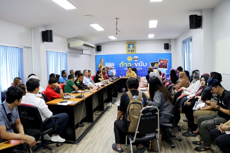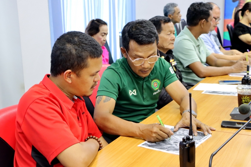และเจ้าหน้าที่ที่มีส่วนเกี่ยวข้อง ร่วมประชุมการจำหน่ายสินค้าในที่หรือทางสาธารณะโดยไม่ได้รับอนุญาตบริเวณตลาดจิระนคร ถนนนิพัทธ์ภักดี