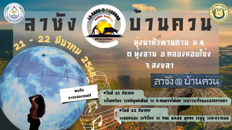 วันนี้ 21 มีนาคม 2568 องค์การบริหารส่วนจังหวัดสงขลา ชวนทุกคนเดินเล่น ช็อป ชิม ชม ในงานลาซัง@บ้านควน ณ ทุ่งนาหัวพานดาน ม.4 ตำบลทุ่งลาน อ.คลองหอยโข่ง จ.สงขลา อบจ.สงขลา ขอเชิญชวนทุกคนมาสนุกสนานด้วยกัน