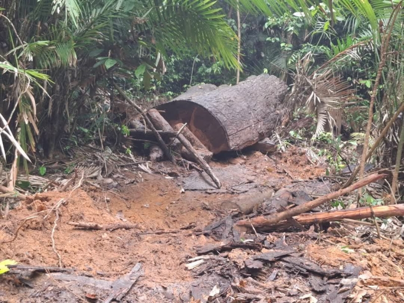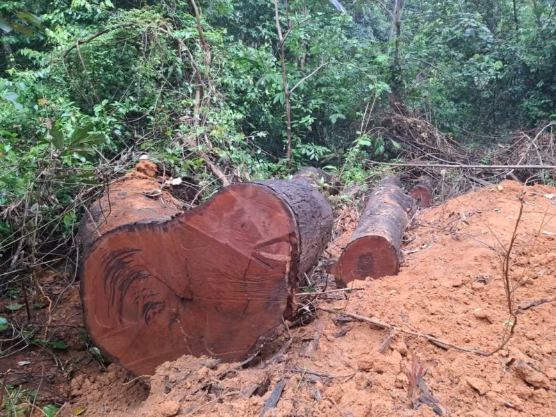 จากการตรวจสอบโดยรอบพบการตัดโค่นต้นไม้ขนาดใหญ่ 4 จุด เป็นไม้ตะเคียนชันตาแมว ซึ่งเป็นไม้หวงห้ามและมีอายุนับร้อยปี พบไม้ท่อนที่ถูกตัดโค่นรวม 4 ท่อน ปริมาตร 11.18 ลูกบาศก์เมตร มูลค่าความเสียหายทั้งสิ้น 322,350 บาท โดยมีร่องรอยการชักลากไม้บางส่วนออกไปจากพื้นที่แล้ว นอกจากนี้ยังพบการบุกรุกตัดถนนใหม่ด้วยเครื่องจักรหนัก ขนาดกว้าง 3 เมตร ยาว 400 เมตร คิดเป็นพื้นที่กว่า 3 งาน 45 ตารางวา