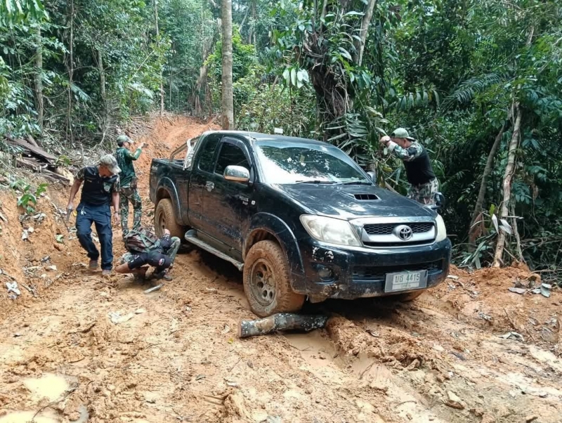 จากการสืบทราบพบว่ามีกลุ่มลักลอบตัดไม้ใช้รถแบคโฮเปิดเส้นทางเข้าไปในเขตป่าเตรียมการประกาศให้เป็นอุทยานแห่งชาติน้ำตกซีโป (ป่าฝั่งขวาแม่น้ำสายบุรี) โดยมีการตัดถนนขึ้นไปบนสันเขา เพื่อลำเลียงไม้ท่อนซุงออกมาจากพื้นที่ ขณะเข้าตรวจสอบ เจ้าหน้าที่ไม่พบตัวผู้กระทำผิด แต่พบรถแบ็คโฮยี่ห้อ Komatsu จอดอยู่ โดยฝากระโปรงเครื่องยนต์ยังร้อนอยู่ บ่งชี้ว่าเพิ่งมีการใช้งานไปไม่นาน และพบรถกระบะ 4 ประตู สีดำ บรรทุกอุปกรณ์เครื่องมือหลายรายการจอดอยู่บริเวณลานกว้างที่ถูกปรับเป็นจุดกลับรถ