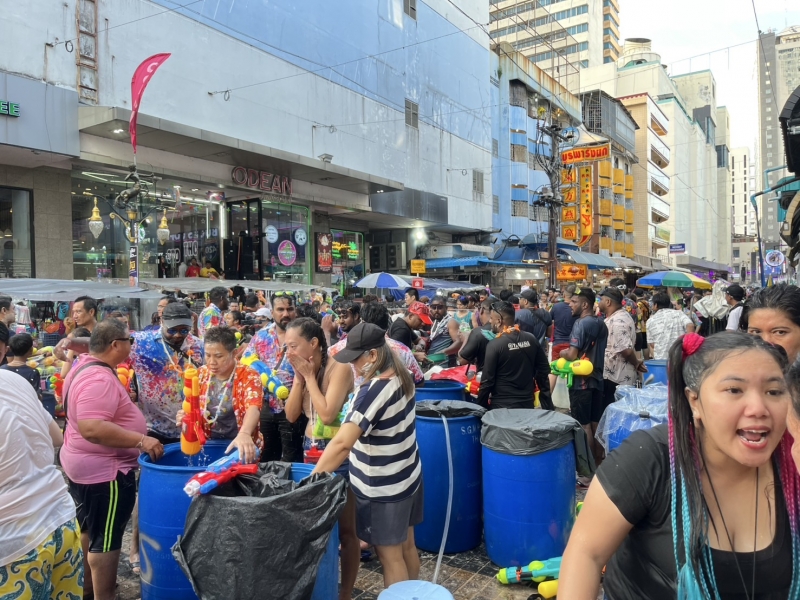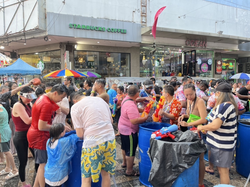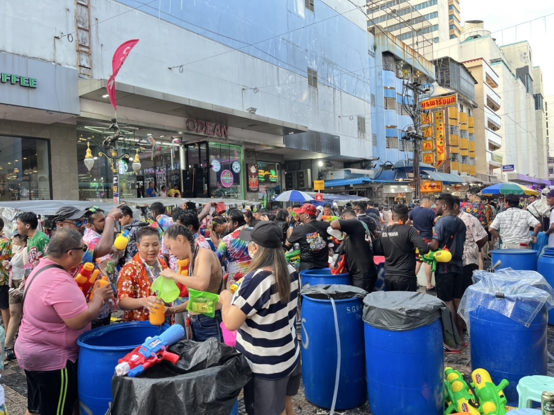ซึ่งบรรยากาศในตอนเย็นวันนี้เป็นไปด้วยความคึกคัก มีนักท่องเที่ยวจำนวนมากทั้งชาวไทยและต่างชาติร่วมเล่นน้ำสงกรานต์ ซึ่งบรรยากาศความสนุกสนานและสีสันของวันสงกรานต์จะเป็นไปตลอดทั้งคืนและคาดว่าในคืนนนี้จะมีนักท่องเที่ยวทยอยเดินทางมาเพิ่มอีกเป็นจำนวนมาก