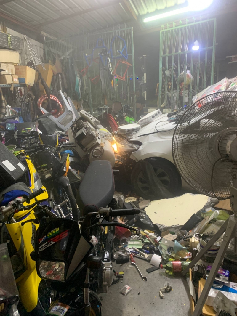 วันที่ 22 พฤษภาคม 2568 ช่วงเวลาประมาณ 00.25 น. เกิดอุบัติเหตุรถยนต์เก๋งพุ่งชนร้านซ่อมรถมอเตอร์ไซค์พังยับ ด้านเจ้าของร้านหวิบดับ นั่งอยู่หน้าร้านแต่กระโดดหลบรถได้ทันเวลา