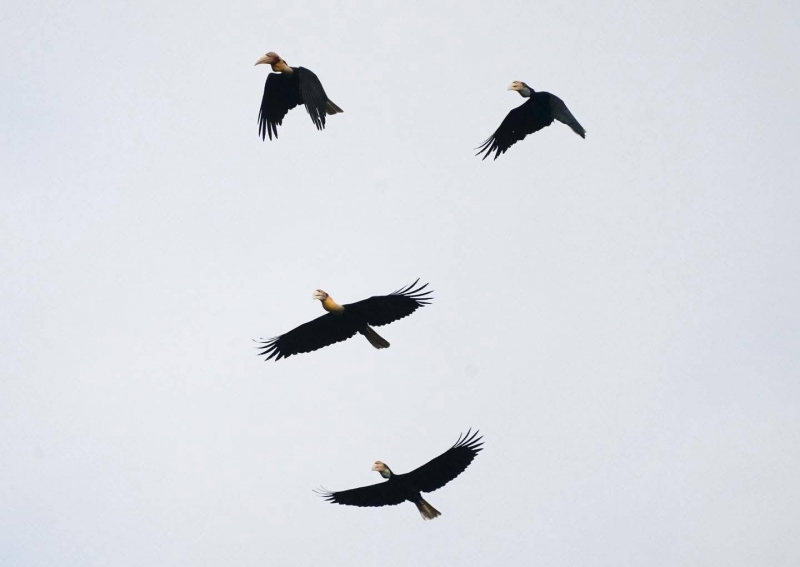 สำหรับนกเงือกกรามช้างปากเรียบ เป็นนกเงือกขนาดใหญ่ที่มักรวมฝูงกันอพยพเพื่อหาแหล่งอาหาร โดยอพยพจากป่าตะวันตกลงไปแถวบริเวณชายแดนไทย-มาเลเซีย พบกระจายพันธุ์ในพม่า ไทย มาเลเซีย เกาะสุมาตรา หมู่เกาะโมลุกกะ และหมู่เกาะโซโลมอน