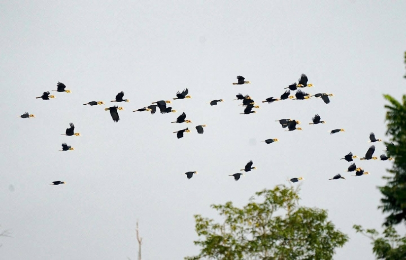 อุทยานแห่งชาติเขาน้ำค้าง จังหวัดสงขลา กำลังเฝ้าติดตามการมาเยือนของฝูงนกเงือกกรามช้างปากเรียบ (Plain-pouched Hornbill) อย่างใกล้ชิดเจ้าหน้าที่ได้พบนกเงือกชนิดนี้รวมตัวกันประมาณ 300 ตัว บริเวณบ้านช่อนทอง ซึ่งเป็นสัญญาณที่ดีว่ากำลังจะมีฝูงใหญ่กว่านี้เข้ามาในช่วงประมาณเดือนหน้าที่จะถึงนี้
