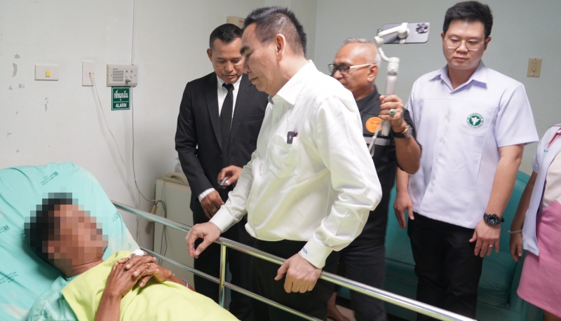 มท.3 ลงพื้นที่ รพ.ระโนด เยี่ยมเหยื่อที่ถูกชายฉกรรจ์ คนใกล้ชิดสส.คนดังลากขึ้นรถตู้ไปรุมทำร้ายจนบาดเจ็บสาหัส