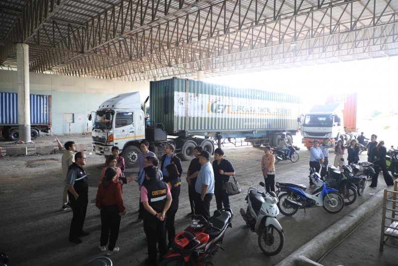 จากนั้นเวลาประมาณ 17.00 น. คณะได้ลงพื้นที่ตรวจเยี่ยมคลังสินค้า จุดตรวจคนเข้าเมือง และติดตามความคืบหน้าโครงการก่อสร้างถนนเชื่อมต่อด่านศุลกากรสะเดาแห่งใหม่ จังหวัดสงขลา กับด่านบูกิตกายูฮิตัม ประเทศมาเลเซีย โดยฝั่งไทยดำเนินการก่อสร้างถนนระยะทางรวม 875 เมตร แบ่งเป็น 2 ระยะ ได้แก่ ระยะที่ 1 (575 เมตร) ซึ่งแล้วเสร็จในเดือนสิงหาคม 2567 และระยะที่ 2 (300 เมตร) อยู่ระหว่างการดำเนินงาน คาดว่าจะแล้วเสร็จภายในตุลาคม 2568