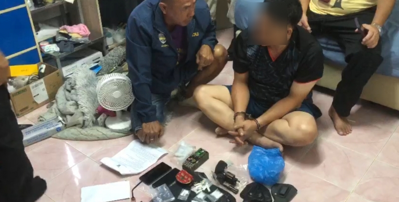 บุคคลตามเป้าหมายพักอาศัยอยู่ จากการตรวจค้นพบยาไอซ์ 27 ถุง น้ำหนักรวมถุง 20.56 กรัม อุปกรณ์การเสพไอซ์ 1 ชุด ถุงแบ่งบรรจุ จำนวนหนึ่ง และอาวุธปืนลูกโม่ ขนาด .38 จำนวน 1 กระบอก พร้อมกระสุน 49 นัด ซุกซ่อนอยู่ในห้องนอน จึงได้แจ้งข้อหา จำหน่ายเสพติดให้โทษประเภท 1 ยาไอซ์
