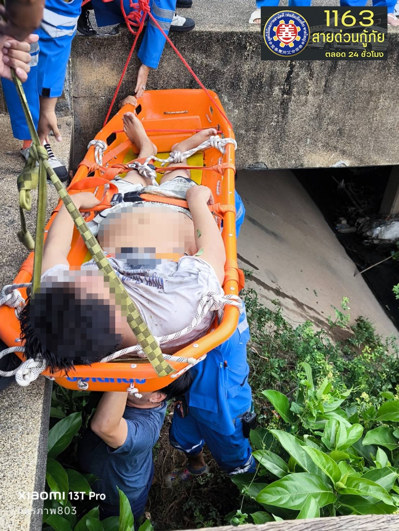 โดยใช้ระยะเวลาในการปฏิบัติงานไม่นานก็สามารถนำผู้ป่วยคนดังกล่าวขึ้นมาจากคลองระบายน้ำได้สำเร็จ และได้เคลื่อนย้ายนำส่งโรงพยาบาลหาดใหญ่ เบื้องต้นเป็นชายไม่ทราบชื่อ เนื่องจากไม่ให้ความร่วมมือใดๆ
