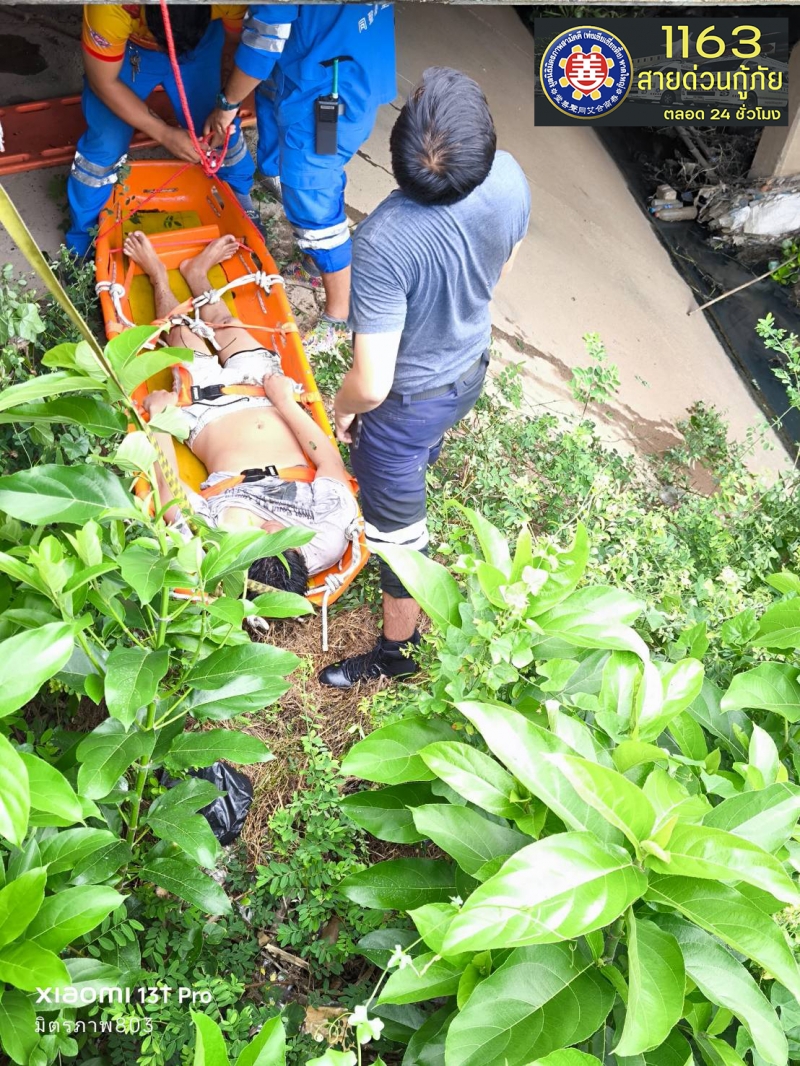 เมื่อถึงจุดเกิดเหตุปรากฎว่า ผู้ป่วยคนดังกล่าวได้เสียหลักพลัดตกลงไปในคลองระบายน้ำ จึงขอสนับสนุนอุปกรณ์ในการเคลื่อนย้ายผู้ป่วยคนดังกล่าวขึ้นมาจากคลอง
