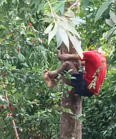 สะตอที่เขาปีนได้นั้นเขาจะนำทิ้งไว้ที่พื้นและพอลงมาได้เก็บใส่กระสอบทันที ไม่เกรงกลัวกฎหมายแถมมีการมองมาทางกล้อง ด้านคนอัดคลิปจึงบอกว่าให้ออกไปเลยและอย่ากลับมาให้เห็นหน้าในบริเวณแถวนี้อีก แต่ก็ไม่มีท่าทีว่าจะกลัวหรือเกรงใจยังคงเก็บสะตอและยิ้มใส่กระสอบไปเรื่อยๆ จำนวนหลายช่อคาดว่าน่าจะก่อเหตุหลายครั้งแล้ว ทั้งขโมยลูกมะนาวบริเวณใกล้เคียง