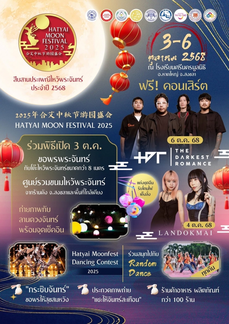 ห้ามพลาดเที่ยวงานสืบสานประเพณีไหว้พระจันทร์ประจำปี 2568 Hatyai Moon Festival 2025 ณ โรงเรียนศรีนครมูลนิธิ อ.หาดใหญ่ จ.สงขลา วันที่ 3 - 6 ตุลาคม 68 นี้ พบกับกิจกรรมมากมายภายในงาน