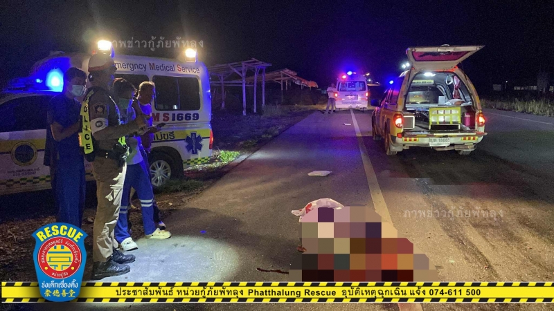 วันนี้ 13 ตุลาคม 2568 เวลา 04.00 น.ศูนย์วิทยุกู้ภัยจังหวัดพัทลุงได้รับแจ้งเหตุรถไม่ทราบชนิดเฉี่ยวชนบุคคลเดินเท้า พ.ต.ท.ประดิษฐ์ ขุนทอง พนักงานสอบสวน สภ.ป่าบอน พร้อมเจ้าหน้าที่กู้ภัยพัทลุง เขตแม่ขรี เข้าตรวจสอบอุบัติเหตุบนถนนสายเอเชีย ฝั่งขาล่องใต้ พื้นที่หมู่ 7 ตำบลวังใหม่ อำเภอป่าบอน จังหวัดพัทลุง