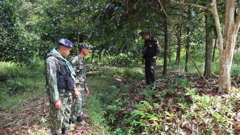 ลงพื้นที่ สวนยางพาราบ้านบาแตตูแง ม.2 ต.ธารน้ำทิพย์ อ.เบตง จ.ยะลา เพื่อตรวจสอบรอยเท้าสัตว์ขนาดใหญ่ที่ชาวบ้านพบและคาดว่าเป็นรอยเท้าเสือจนทำให้ชาวบ้านไม่กล้าเข้าไปกรีดยาง เมื่อช่วงเย็นวันที่ 31 ต.ค. ที่ผ่านมา