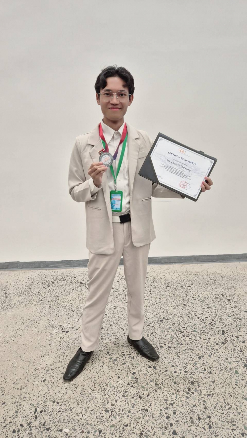 -เหรียญเงินร่วม (รองชนะเลิศอันดับ 1) ระดับปริญญาตรี Mr.Khant Si Thu Aung หลักสูตรควบสองปริญญา กจ.บ. (การประกอบการด้วยนวัตกรรม) และ ศศ.บ. (ภาษาอังกฤษเพื่อการสื่อสารเชิงประกอบการ) คณะสหวิทยาการและการประกอบการ