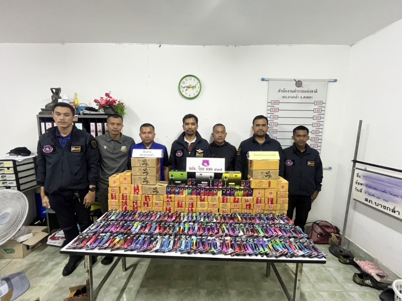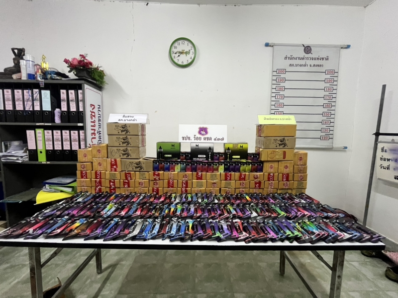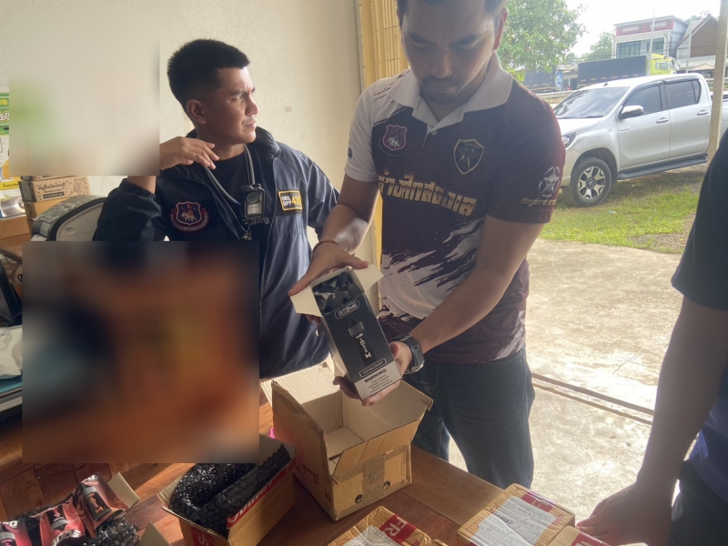พฤติการณ์ในการตรวจยึด เจ้าหน้าที่ตำรวจชุดปฏิบัติการข่าว ร้อย ตชด.437 ได้รับคำสั่งจาก ผู้บังคับบัญชาให้ออกสืบสวนหาข่าวเพื่อป้องกันปราบปรามติดตามผู้กระทำความผิด และ พรบ.ที่มีโทษทาง อาญาอื่นๆ ต่อมาเมื่อวันที่ 10 พ.ย. 68 เวลาประมาณ 14.00 น. ได้มีสายลับแจ้งข้อมูลให้ ด.ต.เอราวัฒน์ อุ่นนวล ทราบว่ามีสินค้าที่ผิดกฎหมาย มานำส่งที่จุดรับพัสดุ ม.14 ต.ท่าช้าง อ.บางกล่ำ จ.สงขลา เพื่อหลบเลี่ยงจากการตรวจสอบและนำส่งจำหน่ายให้แก่ลูกค้าที่สั่งซื้อ จากนั้นเจ้าหน้าที่ได้ร่วมประชุมวางแผน ออกเดินทางไปยังจุดรับพัสดุ ม.14 ต.ท่าช้าง อ.บางกล่ำ จ.สงขลา