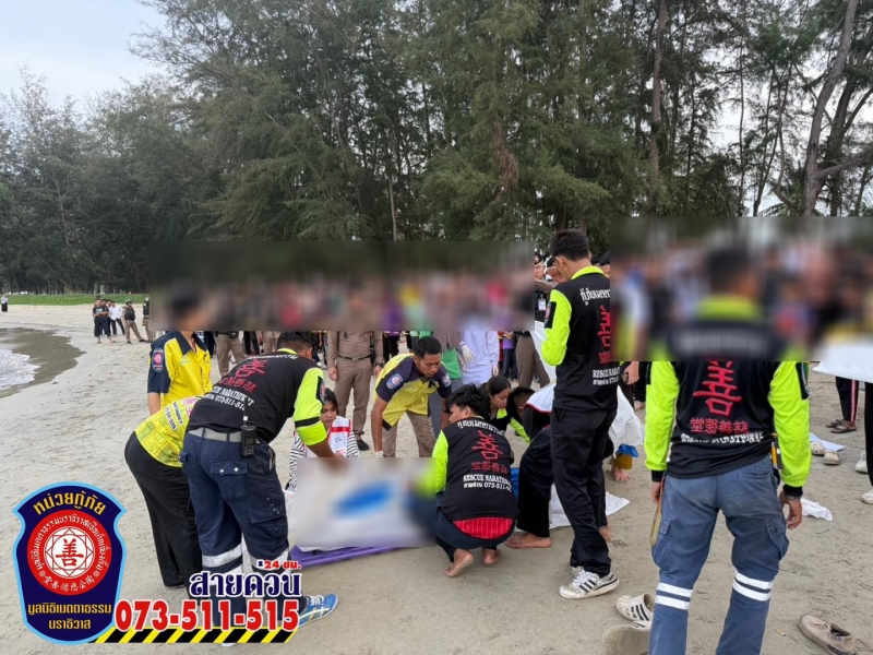 เมื่อ11 พ.ย.68 เวลา 16.33 น. กู้ชีพ-กู้ภัยเมตตาธรรมนราธิวาส รับแจ้งเกิดเหตุ ตรวจสอบ เหตุพบศพ ผู้เสียชีวิตเพศชาย บริเวณริมหาดนราทัศน์ ต.บางนาค อ.เมือง จ.นราธิวาส จึงรุดไปยังจุดเกิดเหตุทันที พร้อมด้วยเจ้าหน้าที่ร้อยเวร